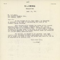 Letter from R.L. Ewing to R.H. Adams discussing an estimate for the cost of a remodel to the front of the Franklin Garage Building. Second page is a list of everything that would need done with an estimate, totaling $1153.35. Two pages.
